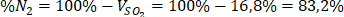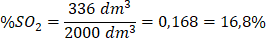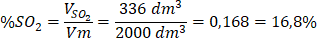 Odpowiedź: Skład mieszaniny gazów wynosi: 16,8% SO2 i 83,2% N2.
