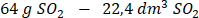 Z równania reakcji wiemy, że 1 mol tlenku siarki(IV) reaguje z 1 molem tlenku wapnia, dlatego: