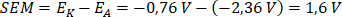 W celu wyznaczenia siły elektromotorycznej SEM należy odjąć od potencjału katody potencjał anody.