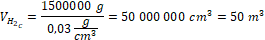 Ze wzoru na gęstość wyznaczamy objętość wodoru: