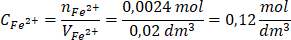 Stężenie molowe jonów żelaza(II) wynosi:
