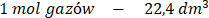 Warunki normalne oznaczają, że 1 mol gazu zajmuje 22,4 dm3.