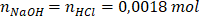 Bazując na równaniu reakcji można zauważyć, że liczba moli wodorotlenku sodu i kwasu solnego jest taka sama, dlatego: