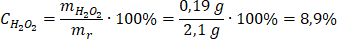 Możemy już obliczyć stężenie procentowe nadtlenku wodoru: