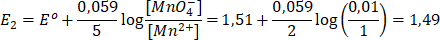 Obliczmy potencjał redukcji jonów MnO4- do Mn2+: