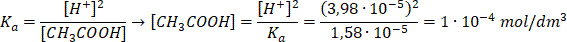 Zapiszmy wartość Ka dla kwasu octowego: