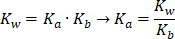 Znając stałą dysocjacji wody oraz Kb, czyli stałą dysocjacji zasady, możemy wyznaczyć Ka.