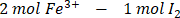 Z 2 moli jonów żelaza(III) tworzy się 1 mol jodu.