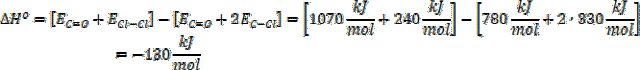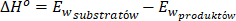 Wartość entalpii reakcji możemy obliczyć jako różnicę energii wiązań w substratach i produktach. Wartości energii wiązań dla poszczególnych reagentów odczytujemy z tabeli.