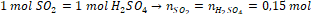 Na podstawie powyższej reakcji można zauważyć, że z 1 mola tlenku siarki(IV) powstaje 1 mol kwasu siarkowego(IV).