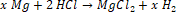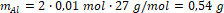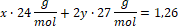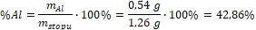 Znając sumaryczną masę próbki podstawiamy masy glinu i magnezu do równania reakcji: