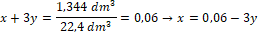Skoro objętość wodoru z obydwu reakcji wynosi 1,344 dm3 to: