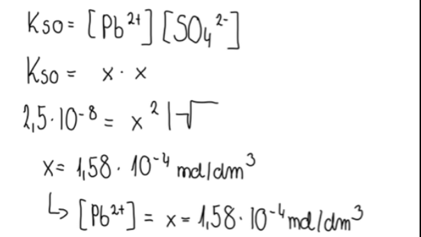 4. Podstawiamy niewiadome z punktu 2. oraz wartość KSO z treści zadania celem obliczenia stężenia poszczególnych jonów: