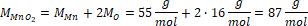 Wyznaczamy masę molową tlenku manganu(IV) z układu okresowego pierwiastków: