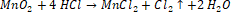 Zapiszmy równanie reakcji chemicznej pomiędzy tlenkiem manganu(IV) i kwasem solnym: