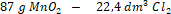 Na bazie równania reakcji można zauważyć, że z 1 mola tlenku magnezu(IV) powstaje 1 mol chloru.