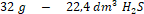 Na bazie równania reakcji wnioskujemy, że z 1 mola siarkowodoru powstaje 1 mol siarki, dlatego możemy obliczyć objętość siarkowodoru.