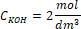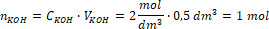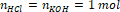 Na bazie równania reakcji można zauważyć, że z 1 molem wodorotlenku potasu reaguje 1 mol chlorowodoru.