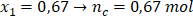 Liczba moli produktu C wynosi 0,67 mol.
