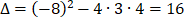 Rozwiązujemy równanie kwadratowe. W tym celu obliczamy deltę oraz pierwiastki równania.
