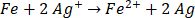 Z równania reakcji wynika, że 1 mol żelaza prowadzi do powstania 2 moli srebra.