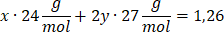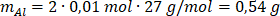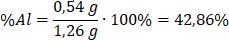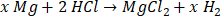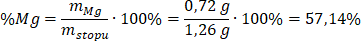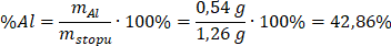 Znając sumaryczną masę próbki podstawiamy masy glinu i magnezu do równania reakcji: