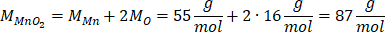 Wyznaczamy masę molową tlenku manganu(IV) z układu okresowego pierwiastków: