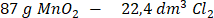 Na bazie równania reakcji można zauważyć, że z 1 mola tlenku magnezu(IV) powstaje 1 mol chloru.