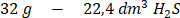 Na bazie równania reakcji wnioskujemy, że z 1 mola siarkowodoru powstaje 1 mol siarki, dlatego możemy obliczyć objętość siarkowodoru.