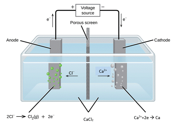 Należy przeprowadzić elektrolizę. W tym celu w naczynia umieszczamy stopiony chlorek wapnia.