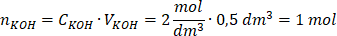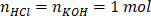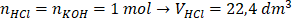 Na bazie równania reakcji można zauważyć, że z 1 molem wodorotlenku potasu reaguje 1 mol chlorowodoru.