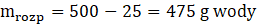 Odpowiedź: W roztworze znajduje się 475 g wody.