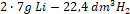 Z 2 moli litu powstają 2 mole wodorotlenku litu i 1 mol wodoru.