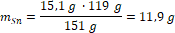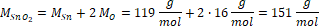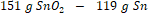 Na podstawie równania reakcji można stwierdzić, że 1 mol SnO2 daje 1 mol cyny.