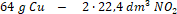 Z treści zadania wynika, że w wyniku reakcji wydzieliło się 1,344 dm3 tlenku azotu(IV). Możemy zatem obliczyć, ile tlenku azotu(IV) wydzieliło się w drugiej reakcji z miedzią: