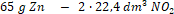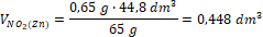 Na bazie równania reakcji widzimy, że 1 mola cynku powstają 2 mole tlenku azotu(IV).
