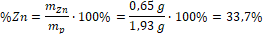 (zawartość cynku w mosiądzu dla obydwu próbek)