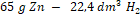 Na bazie równania reakcji można zauważyć, że z 1 mola cynku powstaje 1 mol wodoru.