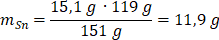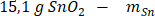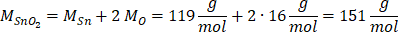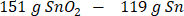 Na podstawie równania reakcji można stwierdzić, że 1 mol SnO2 daje 1 mol cyny.