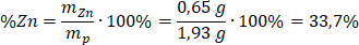 (zawartość cynku w mosiądzu dla obydwu próbek)