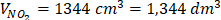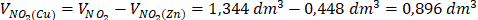 Z treści zadania wynika, że w wyniku reakcji wydzieliło się 1,344 dm3 tlenku azotu(IV). Możemy zatem obliczyć, ile tlenku azotu(IV) wydzieliło się w drugiej reakcji z miedzią: