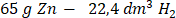 Na bazie równania reakcji można zauważyć, że z 1 mola cynku powstaje 1 mol wodoru.
