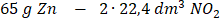 Na bazie równania reakcji widzimy, że 1 mola cynku powstają 2 mole tlenku azotu(IV).