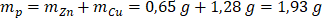 Znając masy poszczególnych składników możemy wyznaczyć sumaryczną masę próbki mosiądzu: