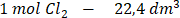 Obliczmy liczbę moli chloru: