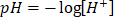 pH to ujemny logarytm ze stężenia jonów H+, a więc: