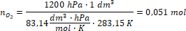 Korzystamy z równania Clapeyrona w celu obliczenia liczby moli tlenu: