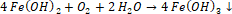 Reakcja utleniania wodorotlenku żelaza(II) pod wpływem tlenu z powietrza: