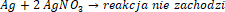 3. Srebro jako metal mniej aktywny od miedzi oraz cynku nie wypiera ich z roztworu, więc reakcje nie zachodzą.