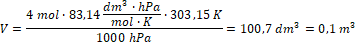 Z równania Clapeyrona wyznaczamy objętość gazu: